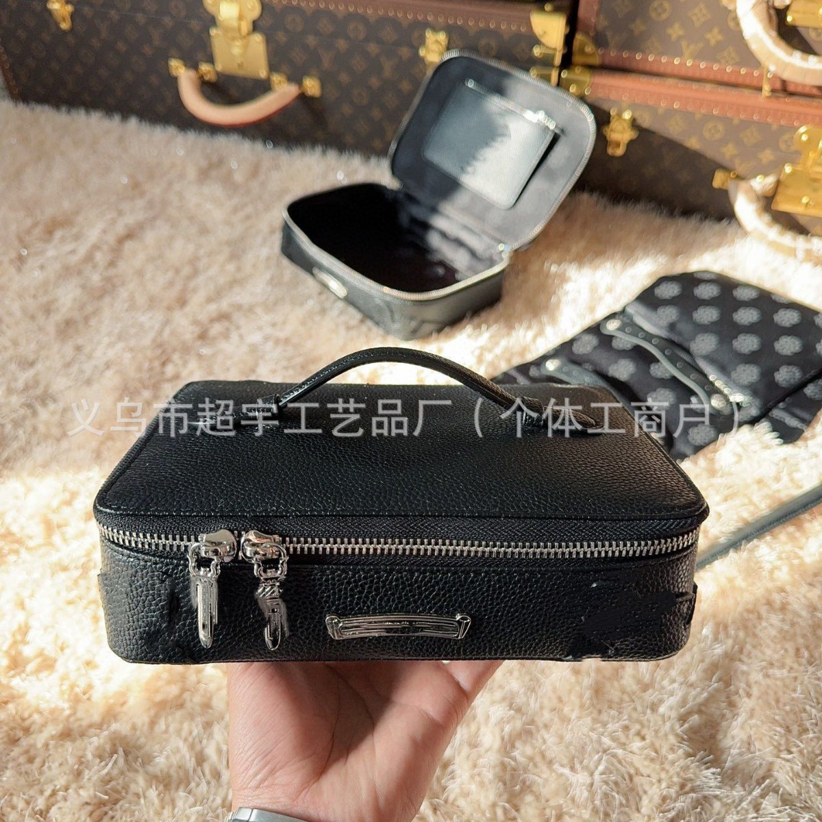 New Crowe-Style Makeup Case Storage Box with Cross Pattern, Large Capacity, Portable High-Quality Cowhide