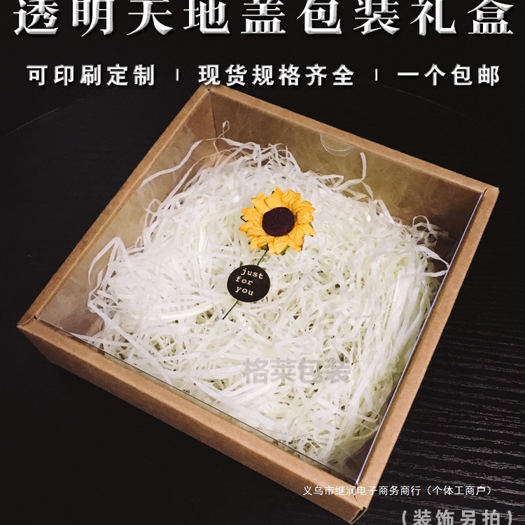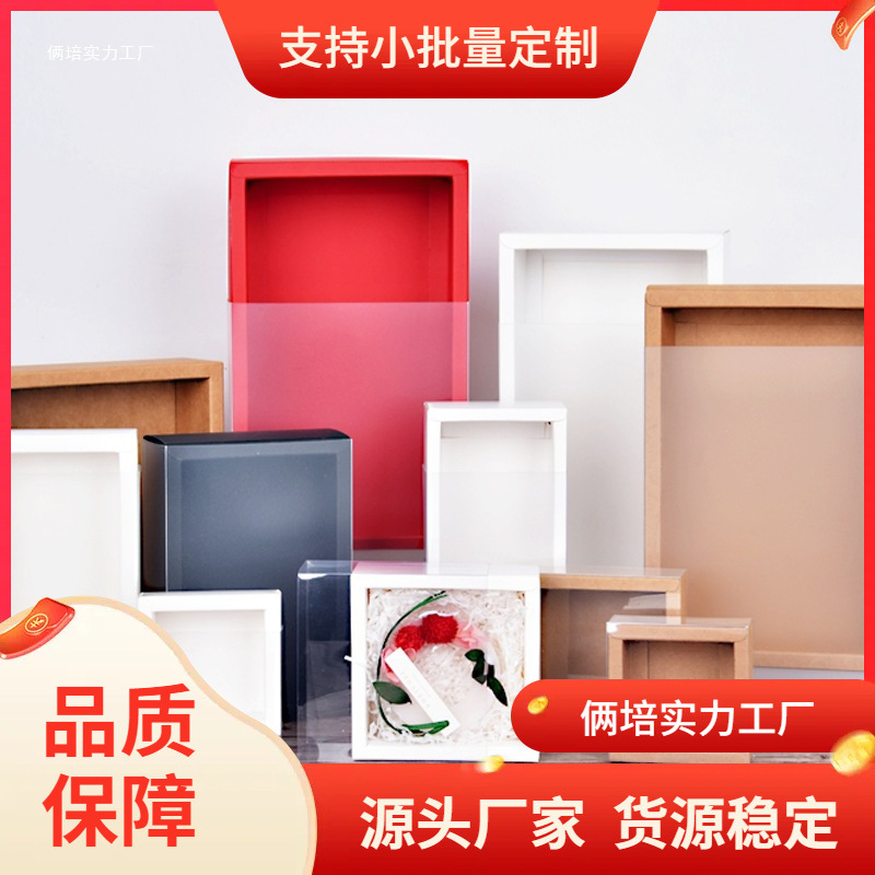 Kraft Paper Box PVC Transparent Packaging Box Heaven and Earth Cover Gift Box Mini Flower bouquet Birthday gift box