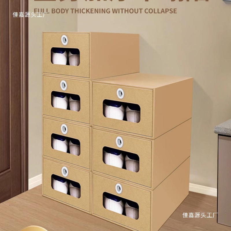 Kraft Carton Shoe Box Storage Artifact Space-Saving Shoe Storage Box Shoe Cabinet Transparent Drawer Carton Simple Shoe Rack