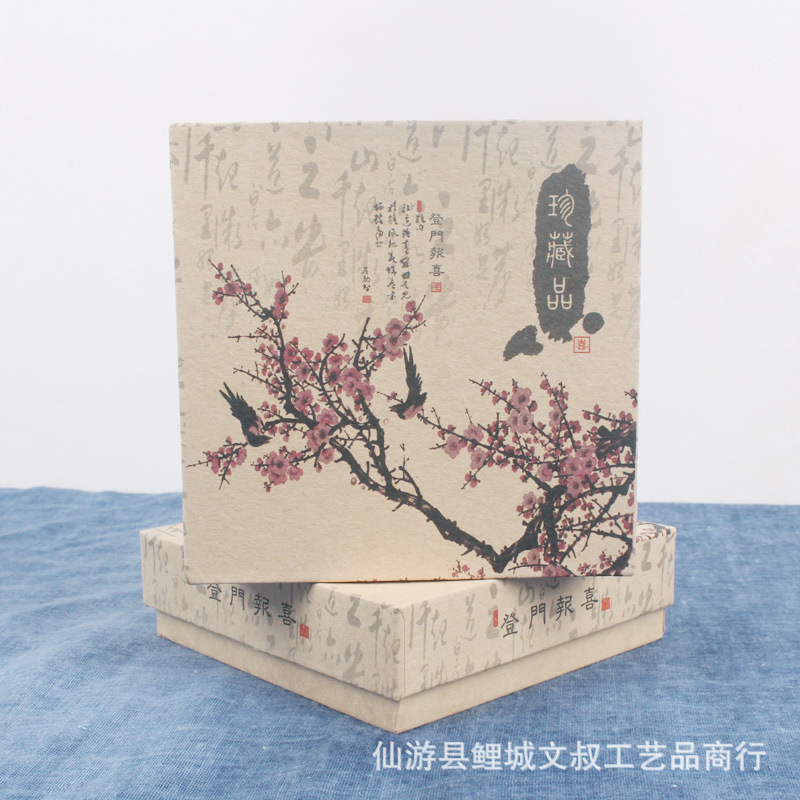 Vintage plum blossom Kraft paper box jewelry box necklace box jewelry box creative gift box Buddha beads bracelet packing box
