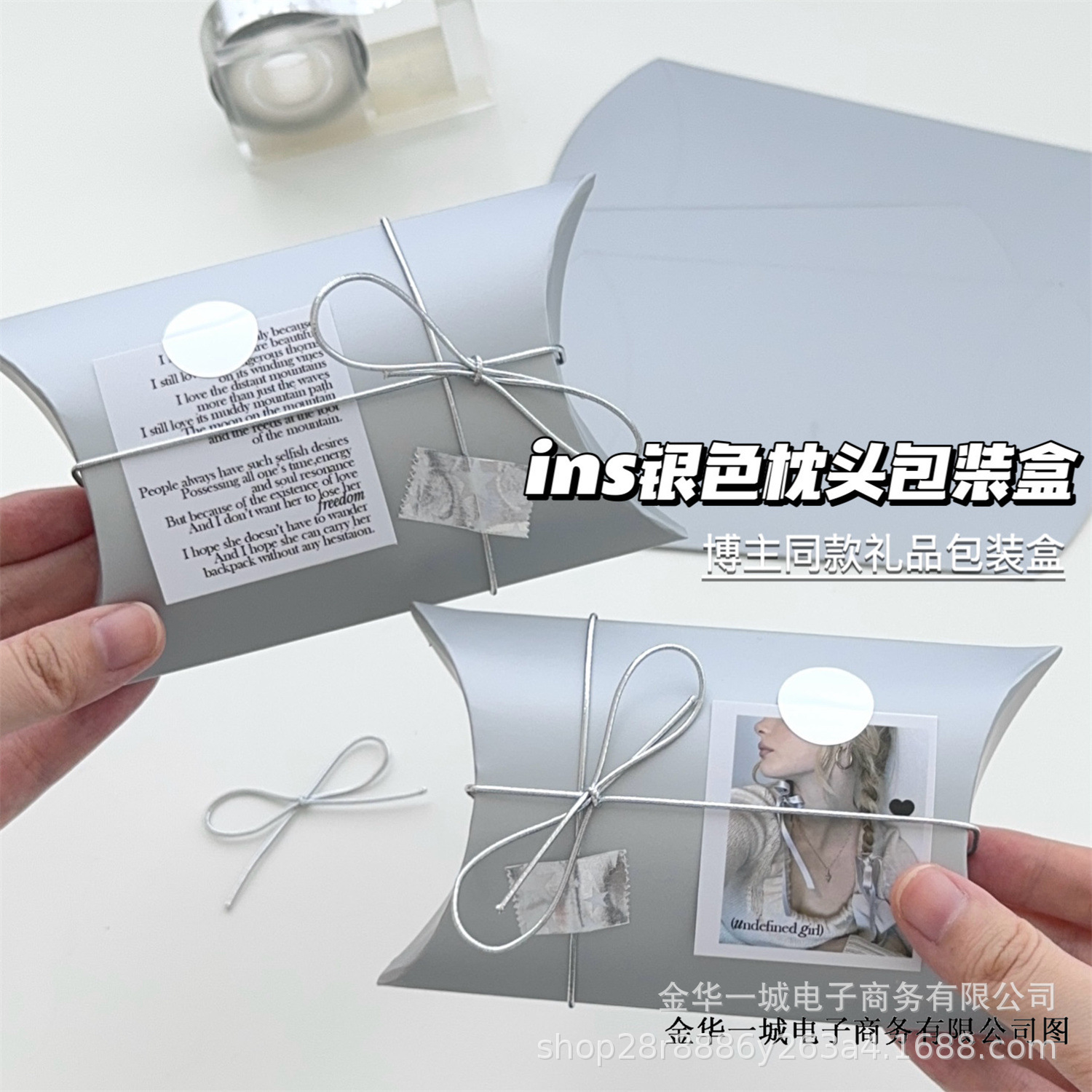 High-Looking Ins Style Silver Pillow Box Gift Card Packaging New Box Gift Box Kraft Paper Box Exquisite
