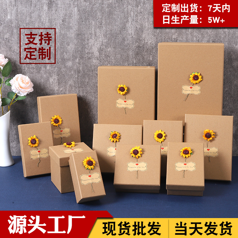 Cross-border Gift Box Small Fresh Self-supporting Gift Packaging Box Simple Solid Color Portable Window Cowhide Paper Box