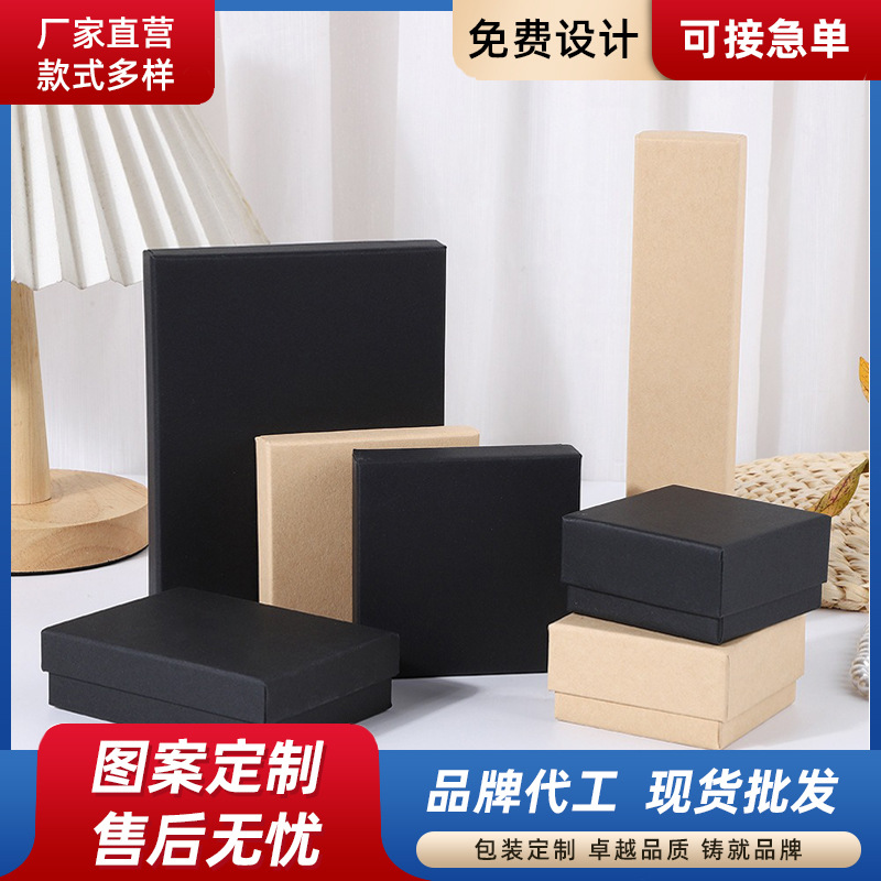 Customized New Storage Box Heaven and Earth Cover Kraft Paper Box Black Jewelry Packaging Box Necklace Ring Earrings Jewelry Box