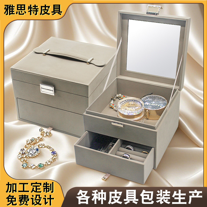 High-end Genuine Leather Jewelry Box Wooden Storage Box Earrings Ring Jewelry High-end Jewelry Watch Cufflinks Packaging