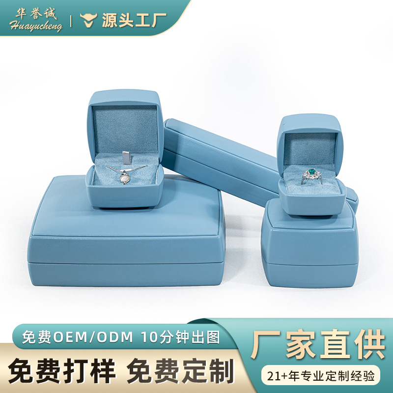 Light Luxury Light Blue Bracelet Necklace Jewelry Gift Box Microfiber Goatskin Jewelry Box Custom Jewelry Box Packaging Box