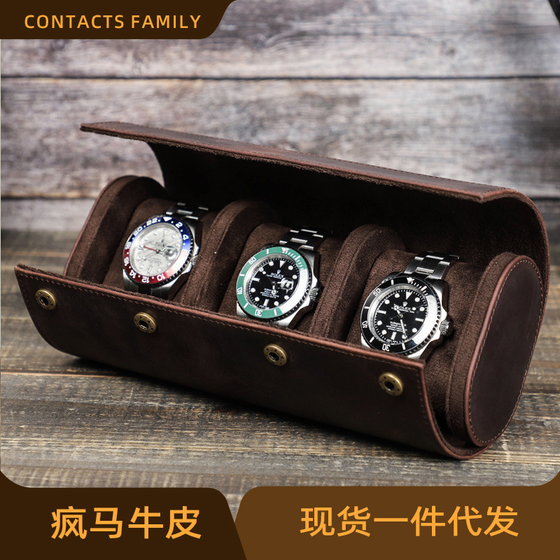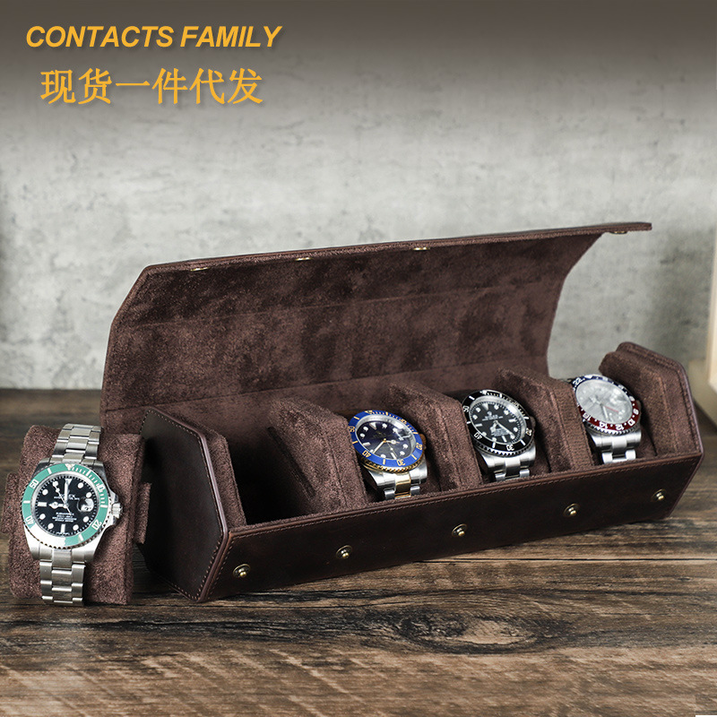 Retro Crazy Horse Leather Anti-Fall Mechanical Watch Storage Box Travel Portable Four-Pack Genuine Leather Watch Box