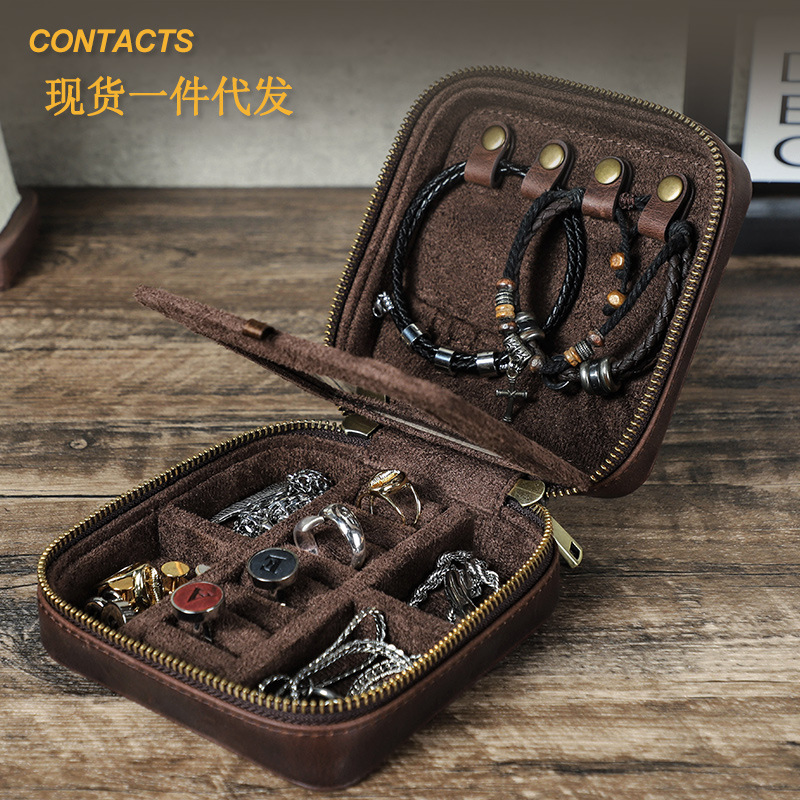 Crazy Horse Cowhide Jewelry Packaging Box Portable Necklace Earrings Bracelet Pendant Jewelry Storage Box Leather Small Square Box