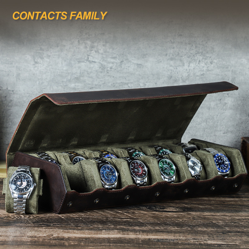 CONTACTS Retro Crazy Horse Cowhide Portable Drop-Resistant Watch Box Single Pack Mechanical Watch Storage Box Spot