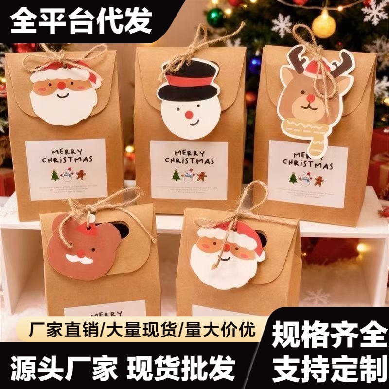 Christmas Portable Birthday Gift Packaging Cookies Dessert Affordable Paper Box Pure Color Kraft Paper Bag Gift Bag