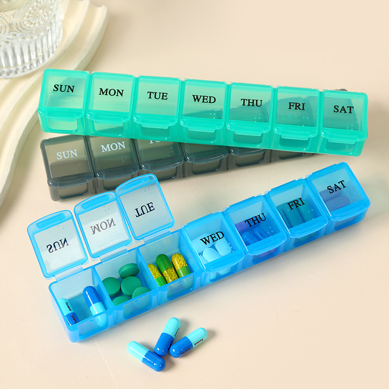 Cross-Border Weekly Pill Box with Flip-Top Seal, Multi-Color, One-Week Medication Organizer, 7 Compartments, Large Capacity Pill Storage Box