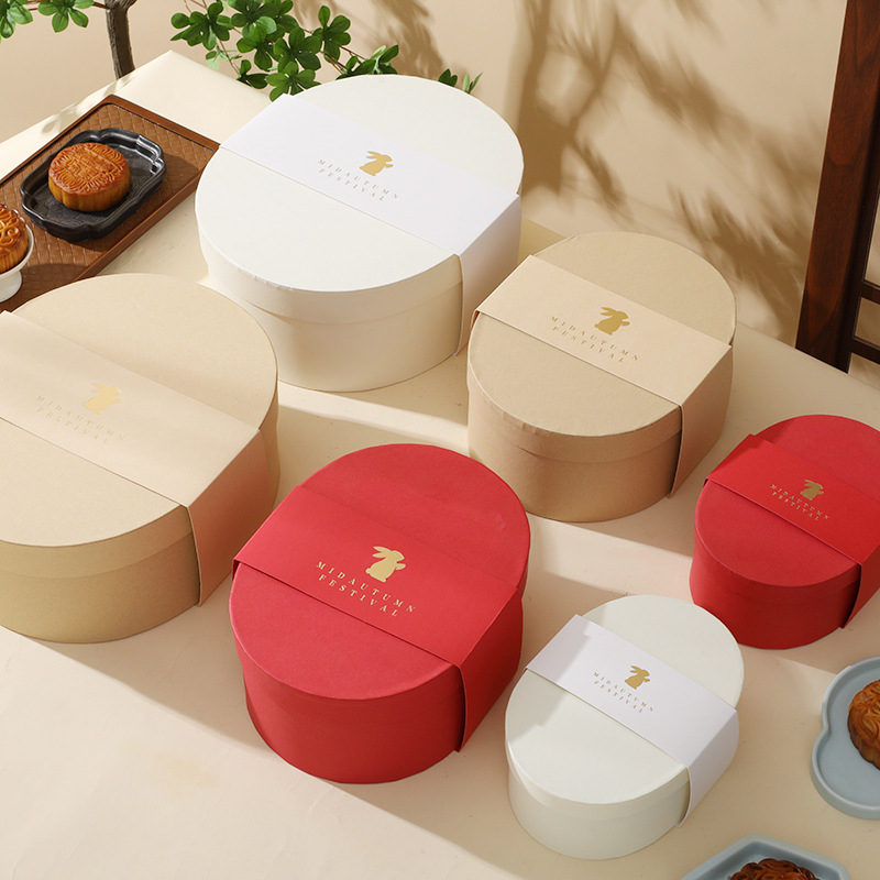 2025 New Mid-Autumn Festival Oval Kraft Paper Box Gift Box Souvenir Teacher’S Day Candy Baking Packaging Box