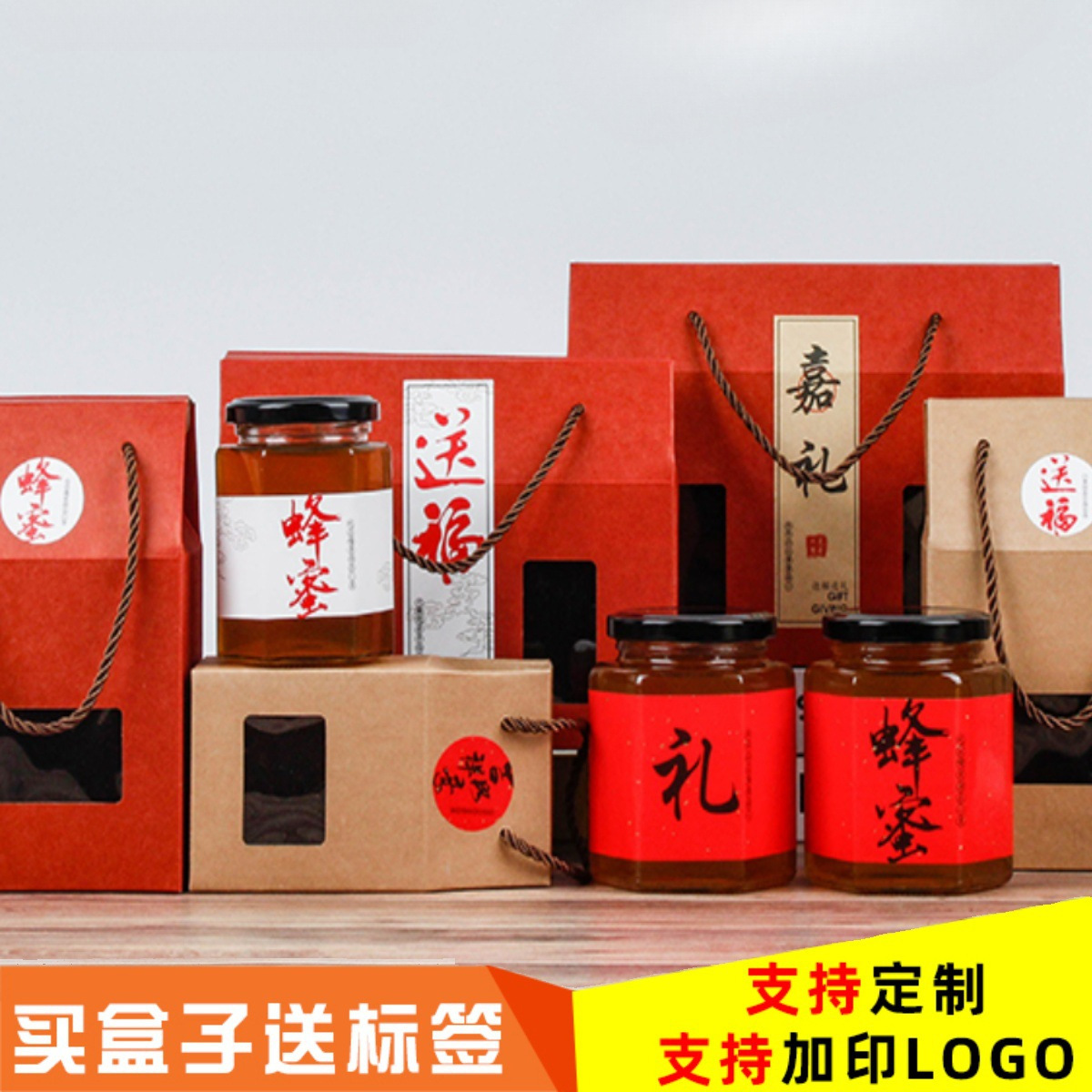 Honey packaging box gift box kraft paper box spicy sauce meat sauce gift box six-sided glass bottle packaging custom