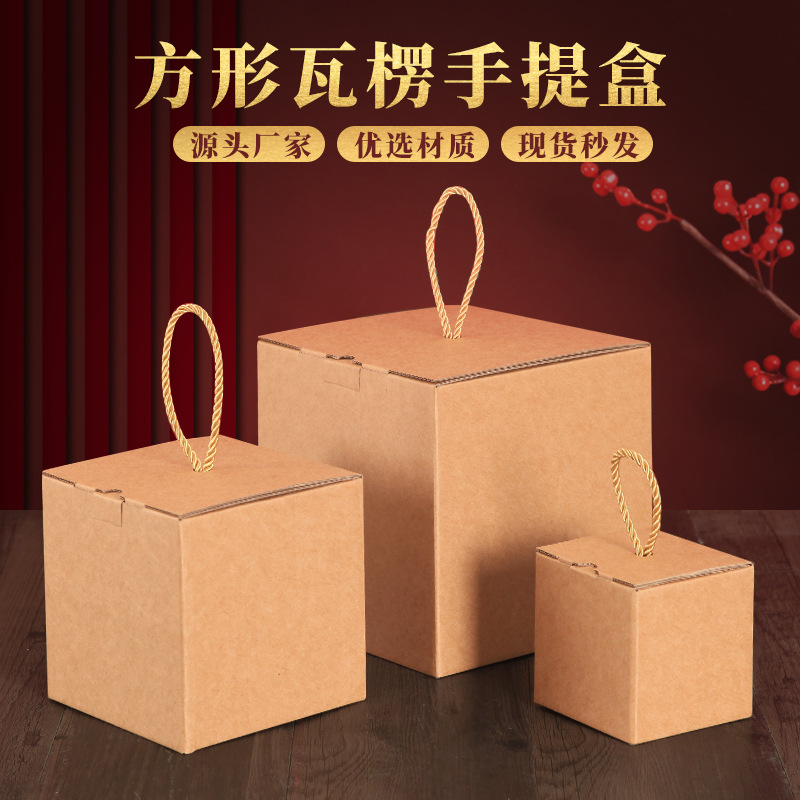Square Kraft Corrugated Paper Packaging Box Tea Gift Box Outer Packaging Box Satchel Kraft Paper Gift Box Empty Box
