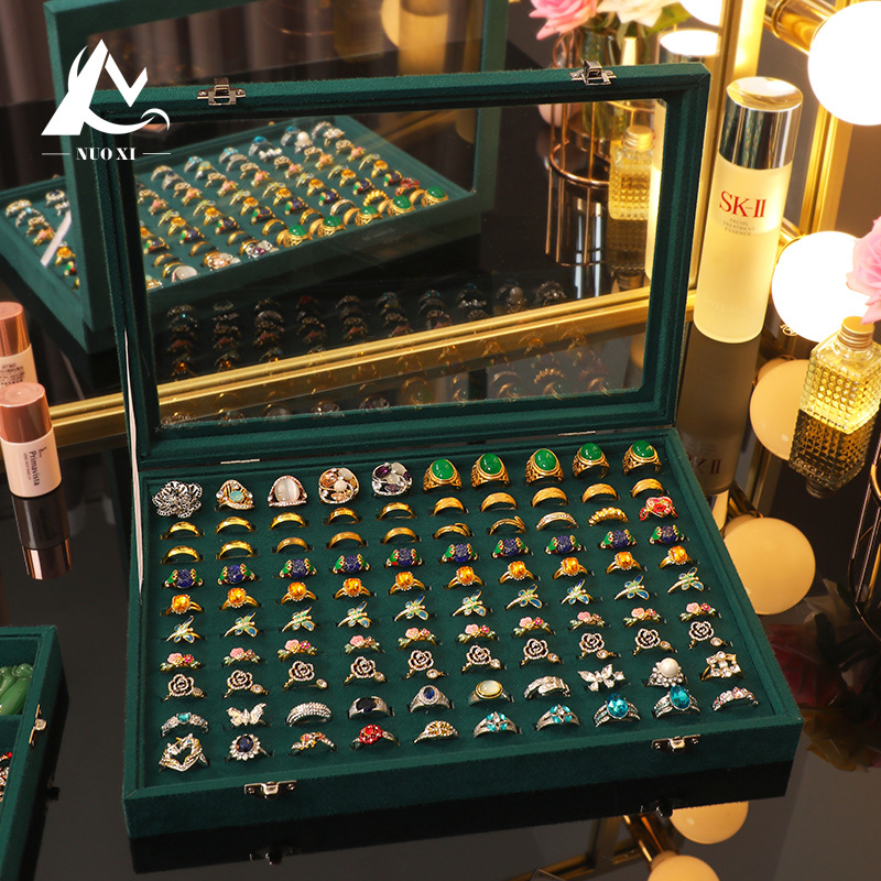 Flannel 100 Ring Box with Lid Large Capacity Jewelry Box Diamond Ring Box Stall Display Box Ring Storage Box