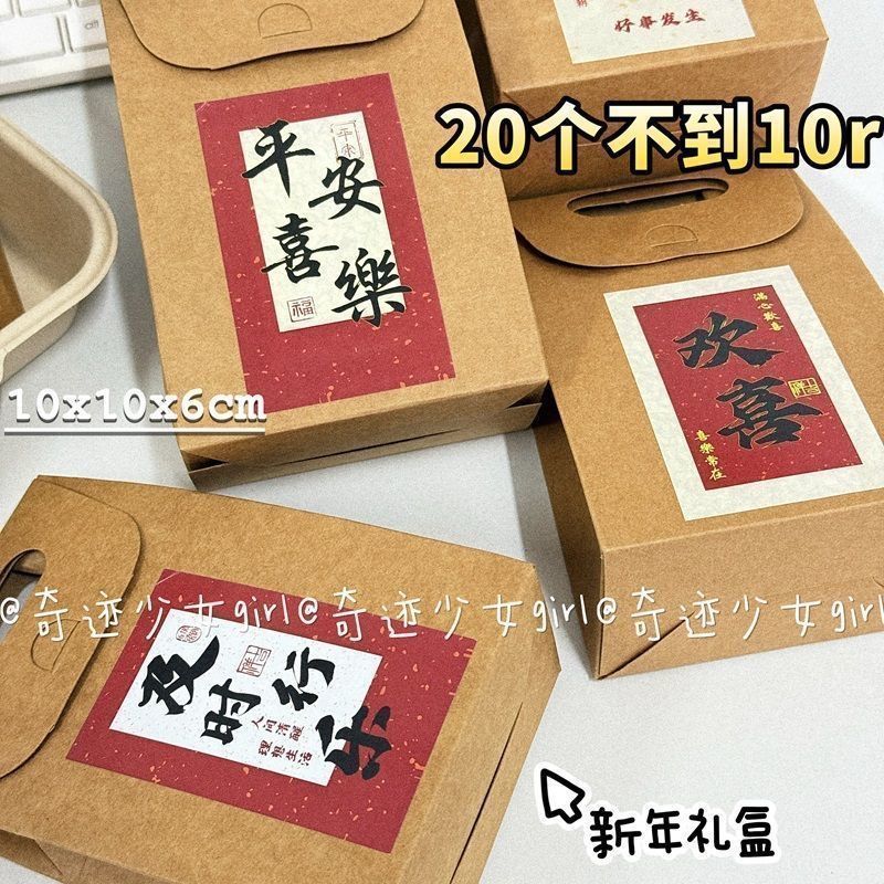 2025 New Year Brown Portable Kraft Paper Bag Material Gift Packaging New Year's Day Gift Bag Hand Account Sticker Packaging Box
