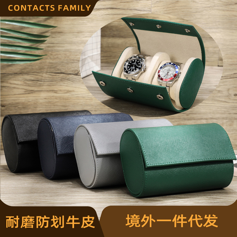 Top Layer Cowhide Mechanical Watch Watch Storage Box Two Portable Handmade Leather Watch Box for Travel