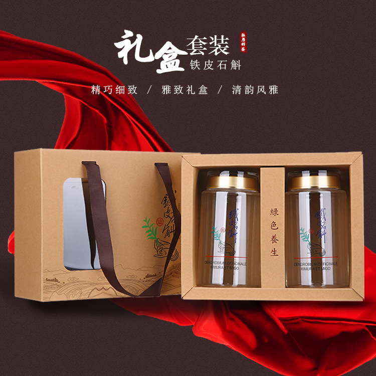 Gift Box suit two bottles Dendrobium 580ml health care product packaging Kraft paper bag in stock