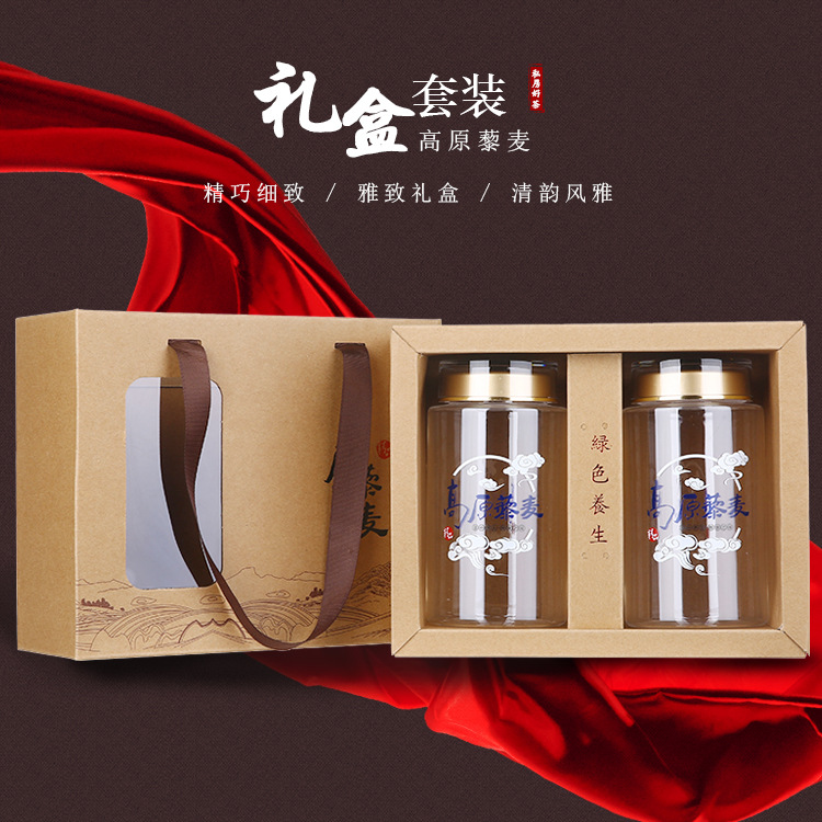 Gift box set two bottles of plateau quinoa 580ml health care products packaging Kraft paper bag in stock