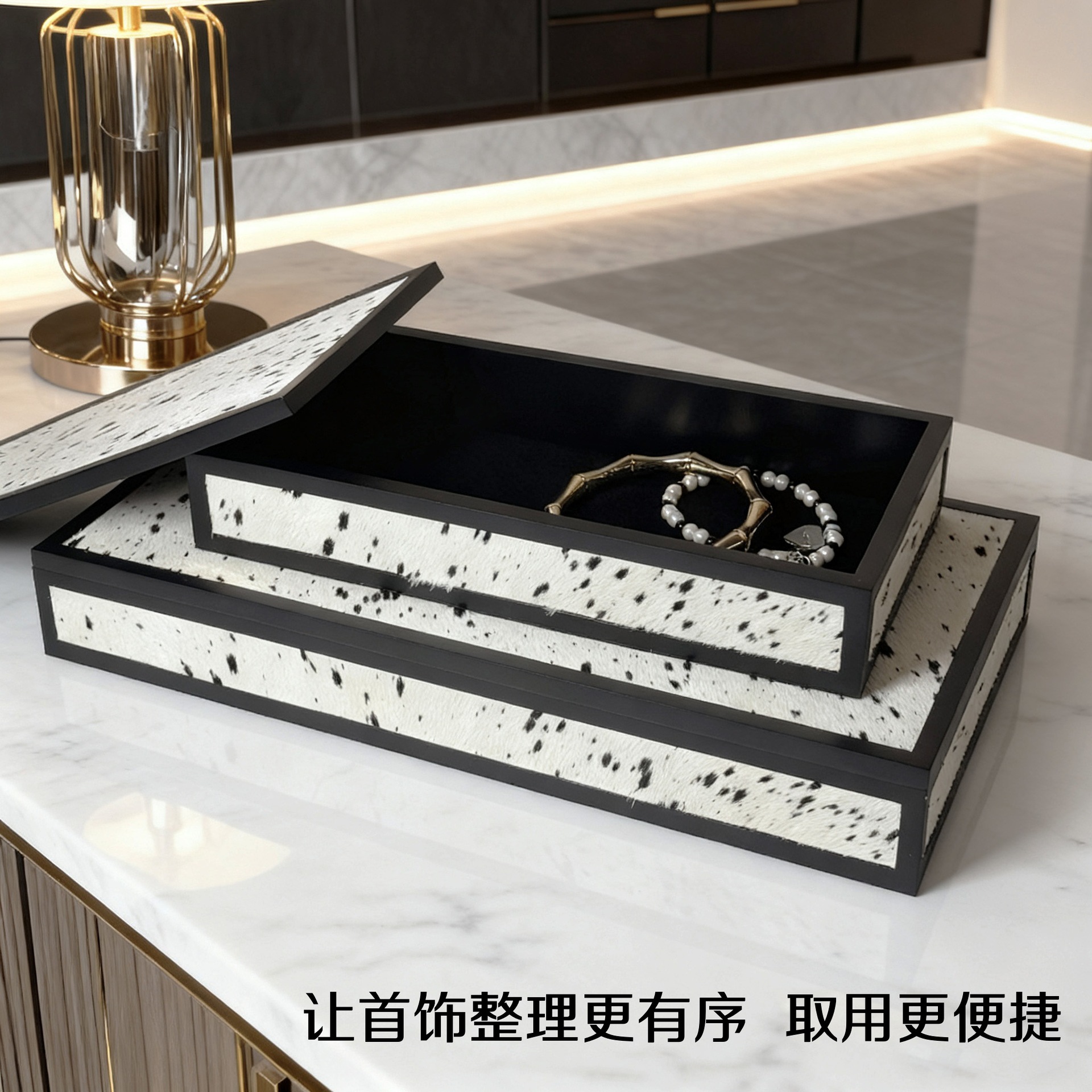 Modern Simple Accessible Luxury Spotted Horse Hair Jewelry Box Model Room Decoration Box Ornaments Modern Home Living Room Decoration