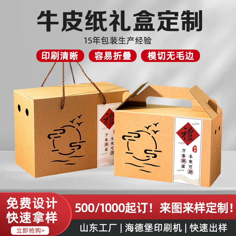Kraft Paper Gift Box Packaging Box Custom-Made Local Specialty Roof Box Box for Agricultural and Sideline Products Fruit Paper Box Kraft Paper Box