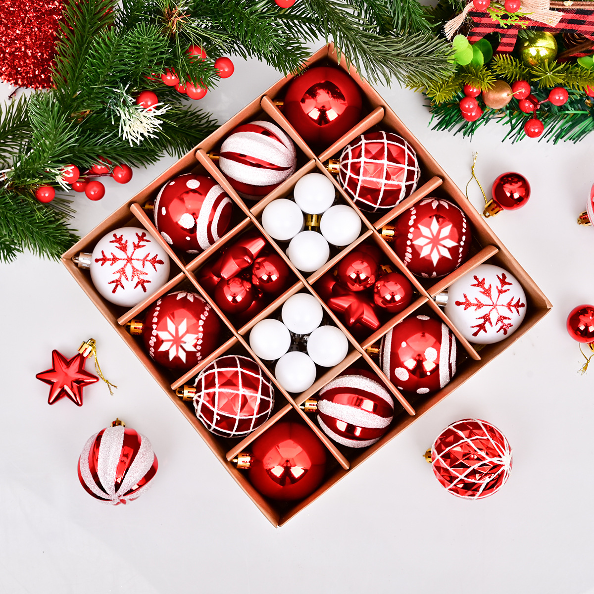 Cross-border new Christmas ball 44PK suit kraft carton red and white hand-painted PS electroplating pendant plastic ball Christmas