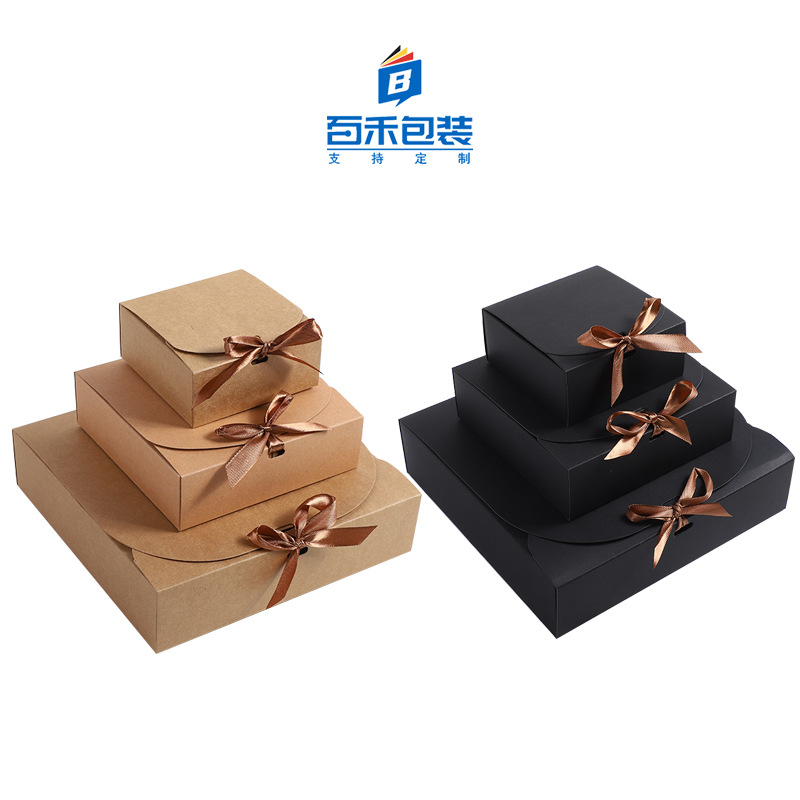 Flat Square Kraft Paper Flip Gift Packaging Box White Cowhide Black Gift Box Candy Box Wedding Gift Box