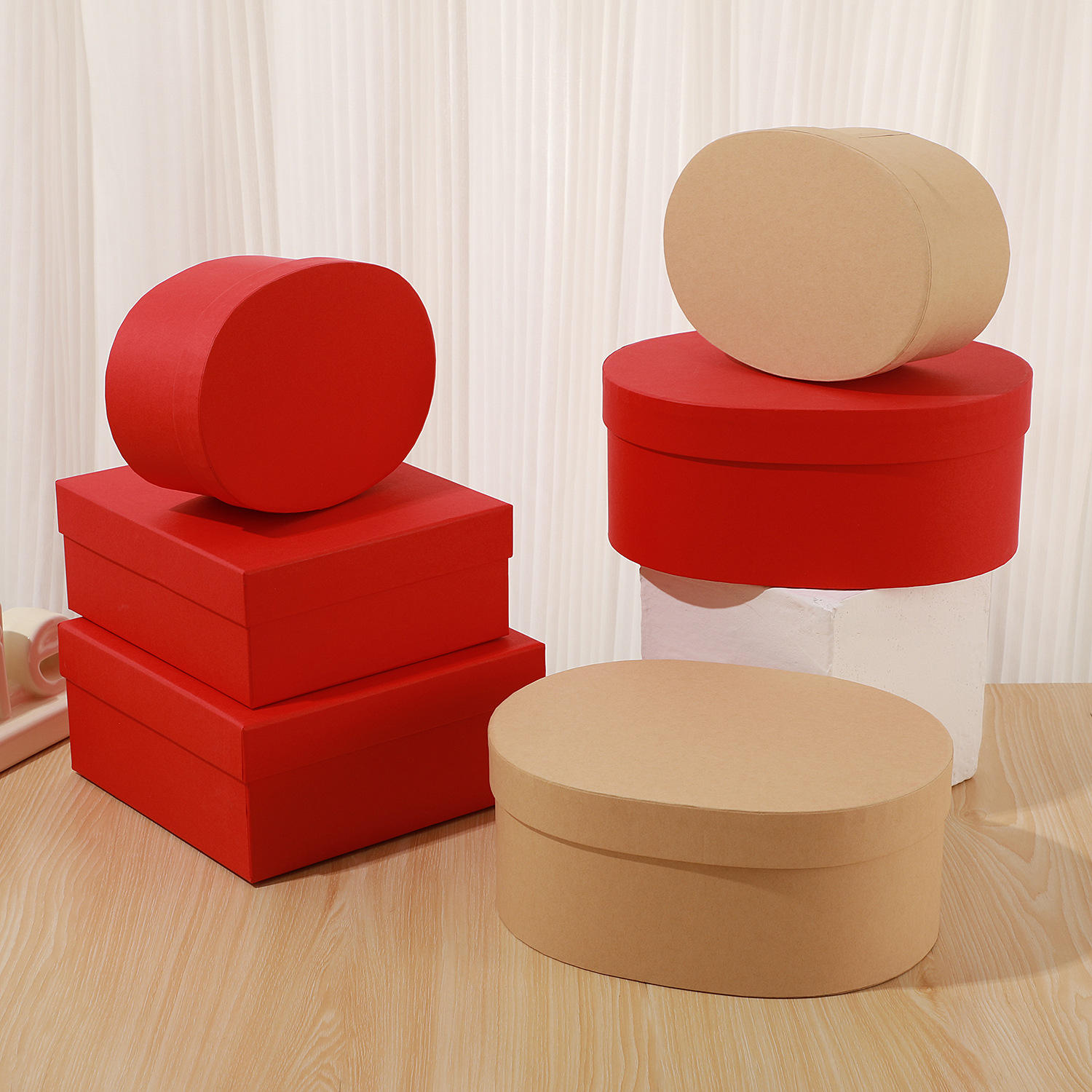 Oval Gift Box Bridesmaid Gift High-End New Year's Birthday Chinese Style Red Wedding Candy Packaging Kraft Paper Box