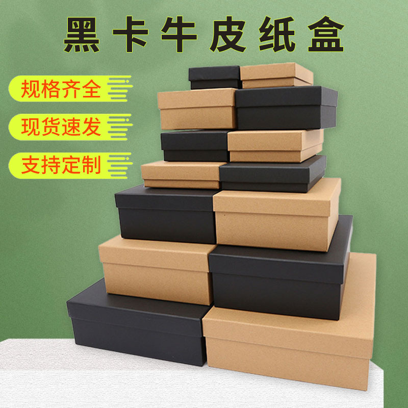 Manufacturer's Ready-Made Black Gift Box Rectangular Packaging Box Heaven and Earth Cover Retro Kraft Paper Box Large Box Wholesale