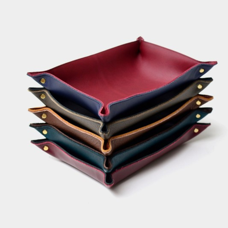 Multi-Color cowhide storage tray vintage desktop leather storage box watch jewelry four-corner storage tray