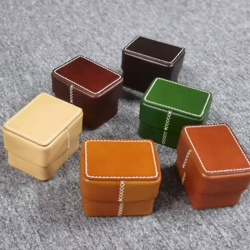 Factory Wholesale Italian Vegetable Tanned Leather Cowhide Hand-Sewn Desktop Storage Box Convenient Square Cosmetic Box for Going Out