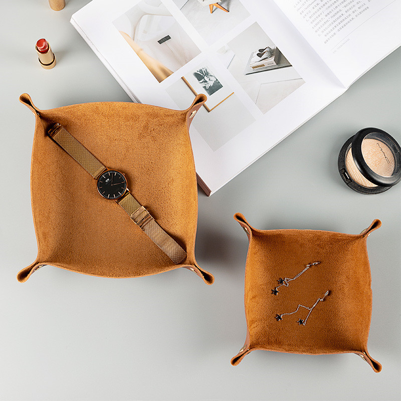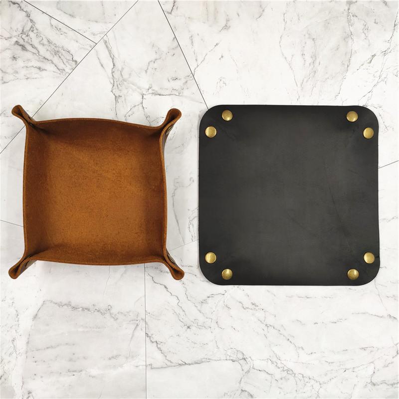 Source Manufacturer Cowhide Folding Storage Tray Button Sundry Storage Box Leather Jewelry Tray Retro B&B Storage