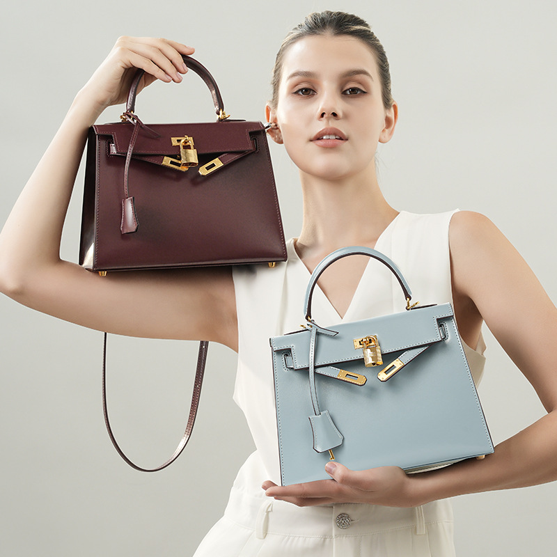 High-Definition Version of Kelly Bag Second Generation Box Pattern Cowhide Mini Handbag New High-End Genuine Leather Women's Crossbody Bag