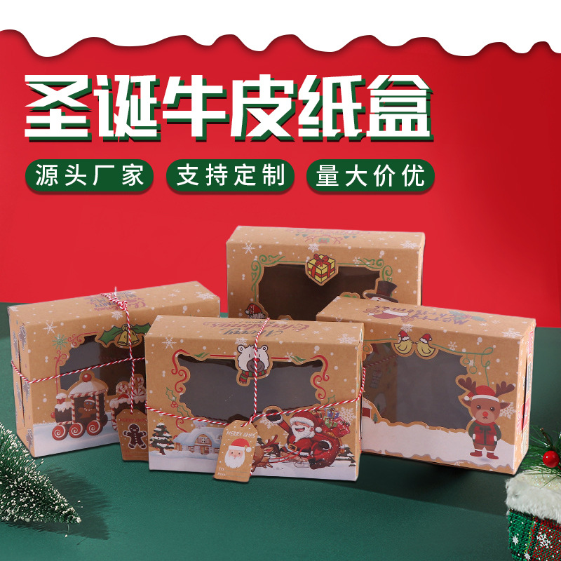 Christmas Themed Gift Box Window Opening Foldableing Transparent Kraft Paper Box Gift Box Holiday Baking Dessert Packaging Box