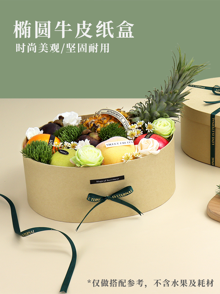 Xinsheng Fresh Fruit Packaging Box Internet Celebrity Oval French Floral Fruit Gift Box Pure Color Kraft Paper Box
