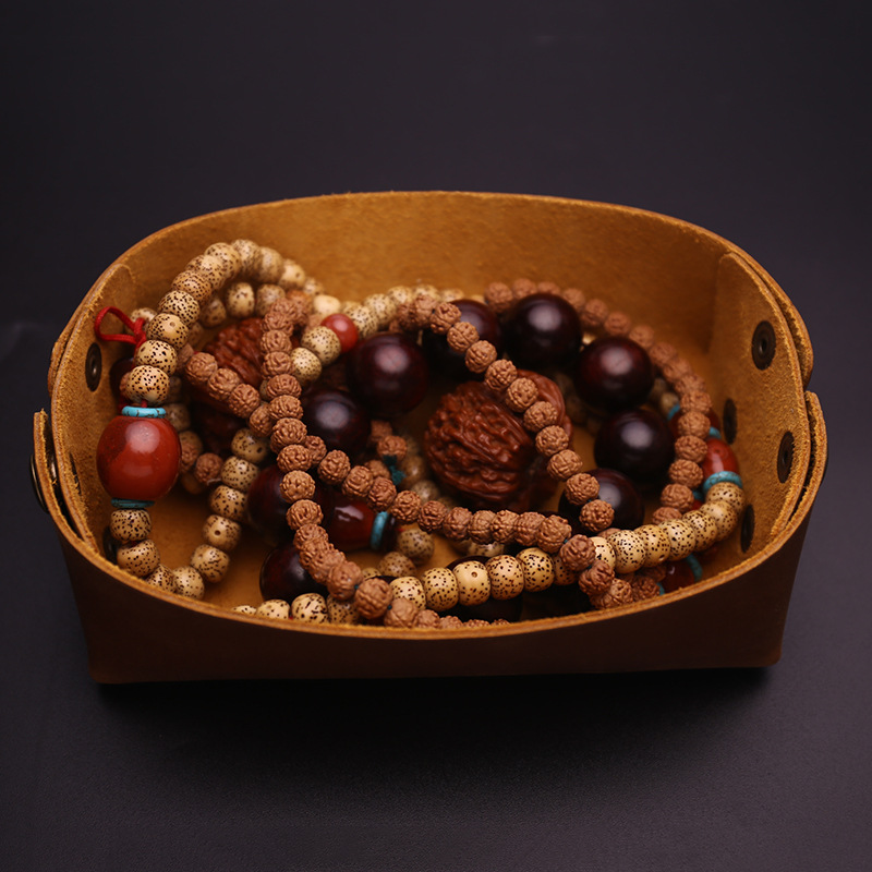 Handmade cowhide tray text play bracelet walnut key change storage bag anti-knock cowhide storage box
