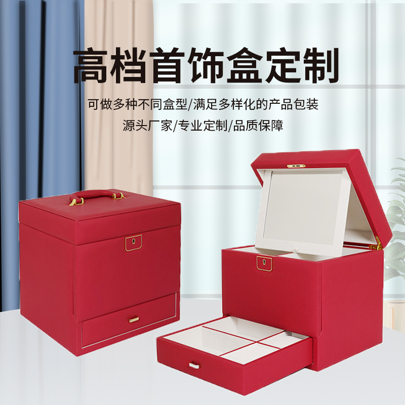 Customized High-End Pu Leather Jewelry Storage Box Large Capacity Three-Layer Jewelry Box with Mirror Ring and Earring Storage Box