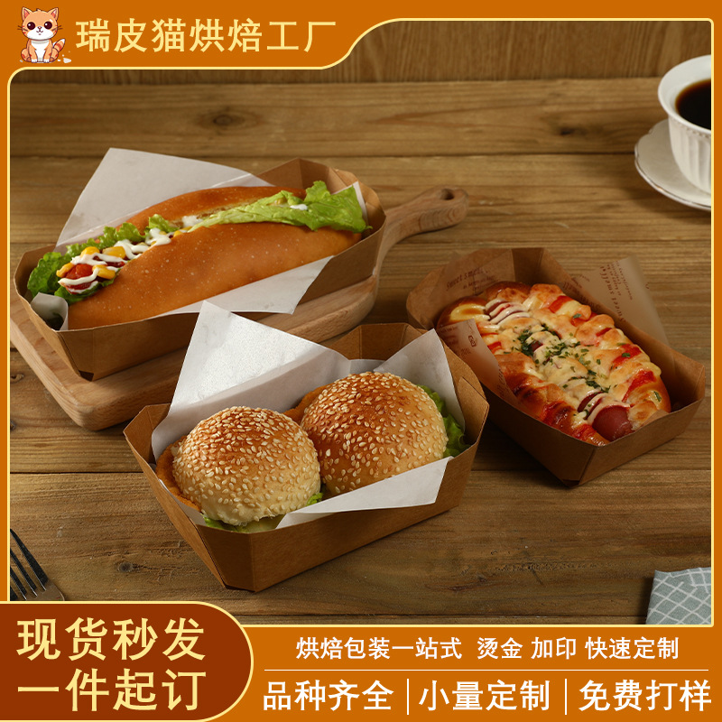 Boat-shaped Mini Hamburger Packaging Kraft Paper Tray Octagonal Box Cheese Hot Dog Bag Bun Croissant Pound Tray