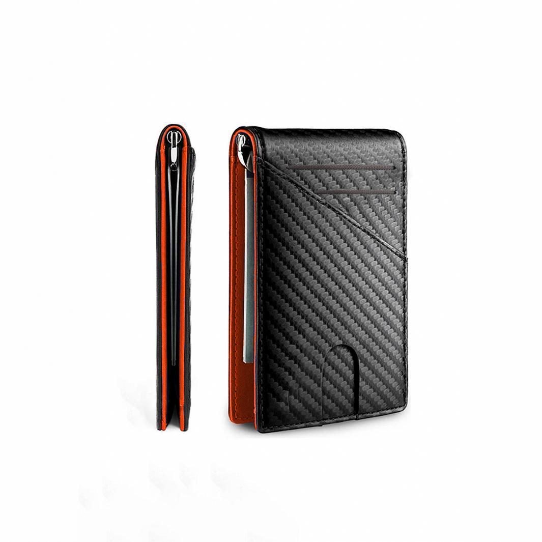 Cross-border Short Wallet Carbon Fiber Card Bag Wallet High-end Gift Box Genuine Leather Card Bag Top Layer Cowhide Wallet for Men