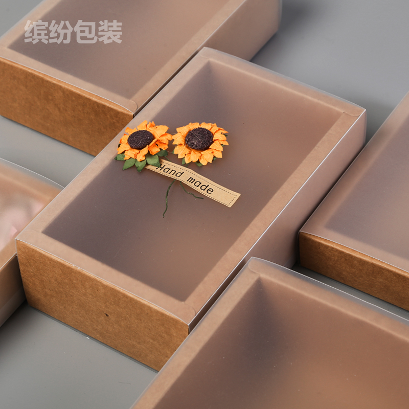 Kraft Paper Box Drawer Box Tea Flower Tea Packaging Box Transparent Gift Box Square Handmade Soap Box