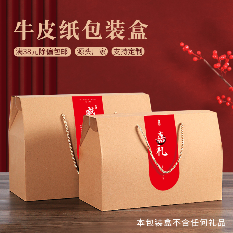 Kraft Paper Packaging Box Specialty Dry Goods Kraft Fruit Cooked Food Gift Box Empty Box Large Gift Box Paper Box