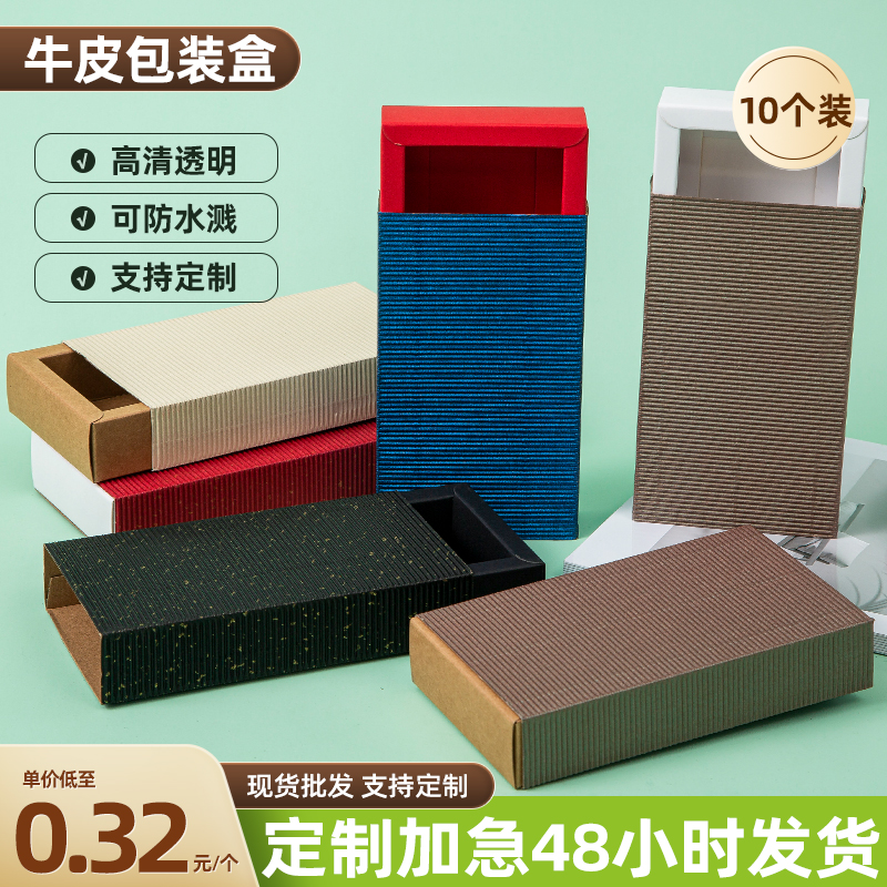 Spot Kraft Paper Box Drawer Box Pvc Frosted Gift Box Small Gift Empty Box Rectangular Packaging Box Customization