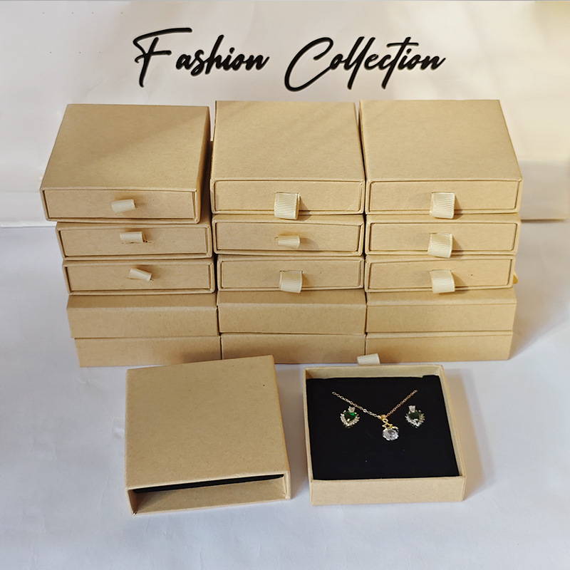 Cross Border Necklace Box Drawer Cowhide Paper Box Earrings Necklace Ring Bracelet Box Pearl Jewelry Packaging Box in stock