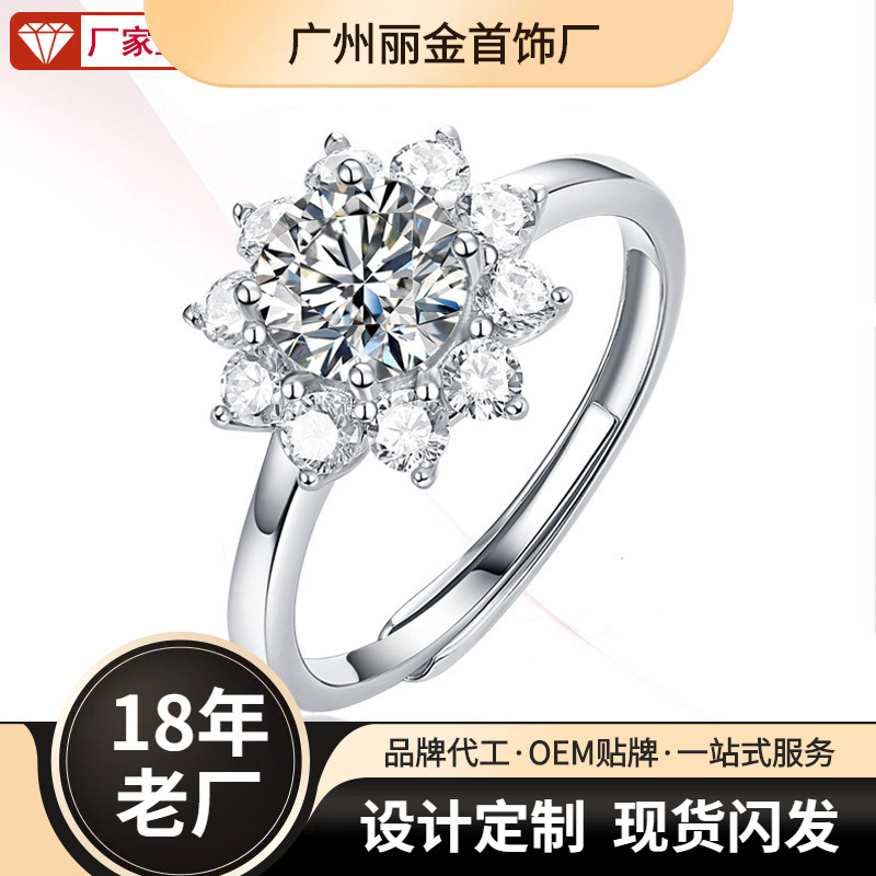 Spot Moissanite Open Heart Ring 925 Silver Women's Ring Fashion Jewelry Modern Simple Goddess Ring