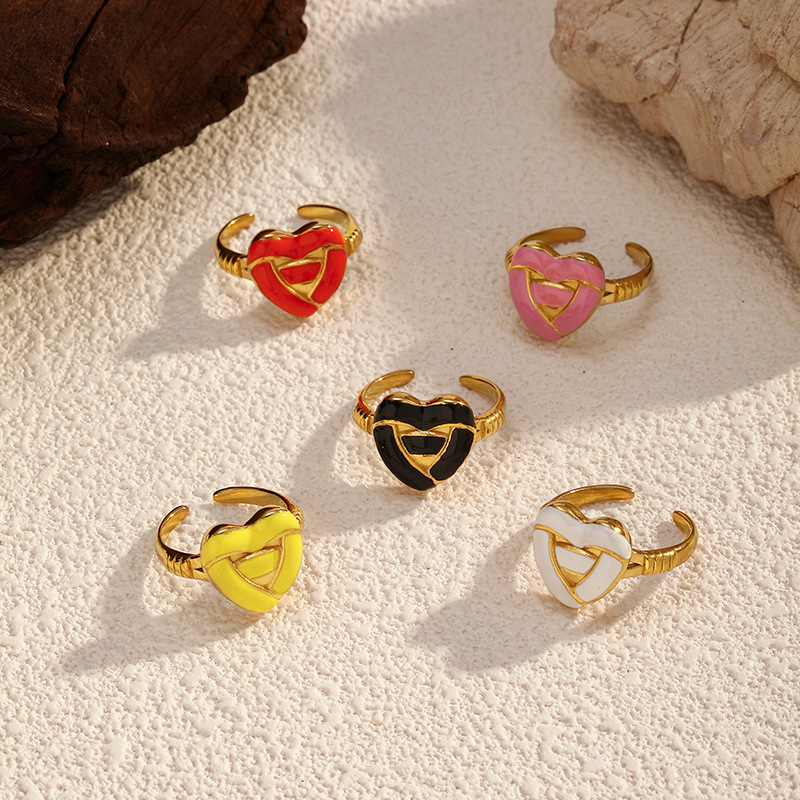 Geometric Triangular Drip Glaze Ring French Simple and Compact Goddess Style Ring Stainless Steel Summer Style Atmospheric Hand Jewelry