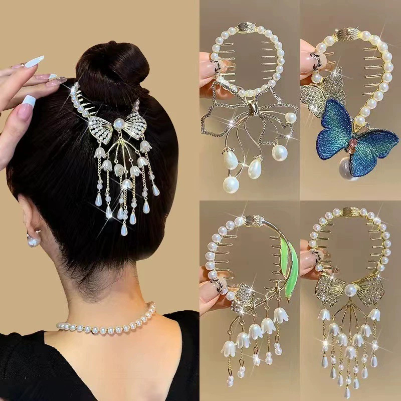 Bowknot Bun Hair Clip for Women, Back-Of-Head Hair Styling Tool, 2025 New Tassel Elegant Hairpin Hair Accessory