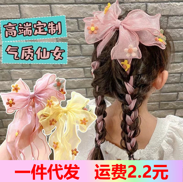 Hair Accessories Flower Long Gauze Ribbon Bow Hairpin Hair Weaving Goddess Hair Flower Hair Accessories Headwear