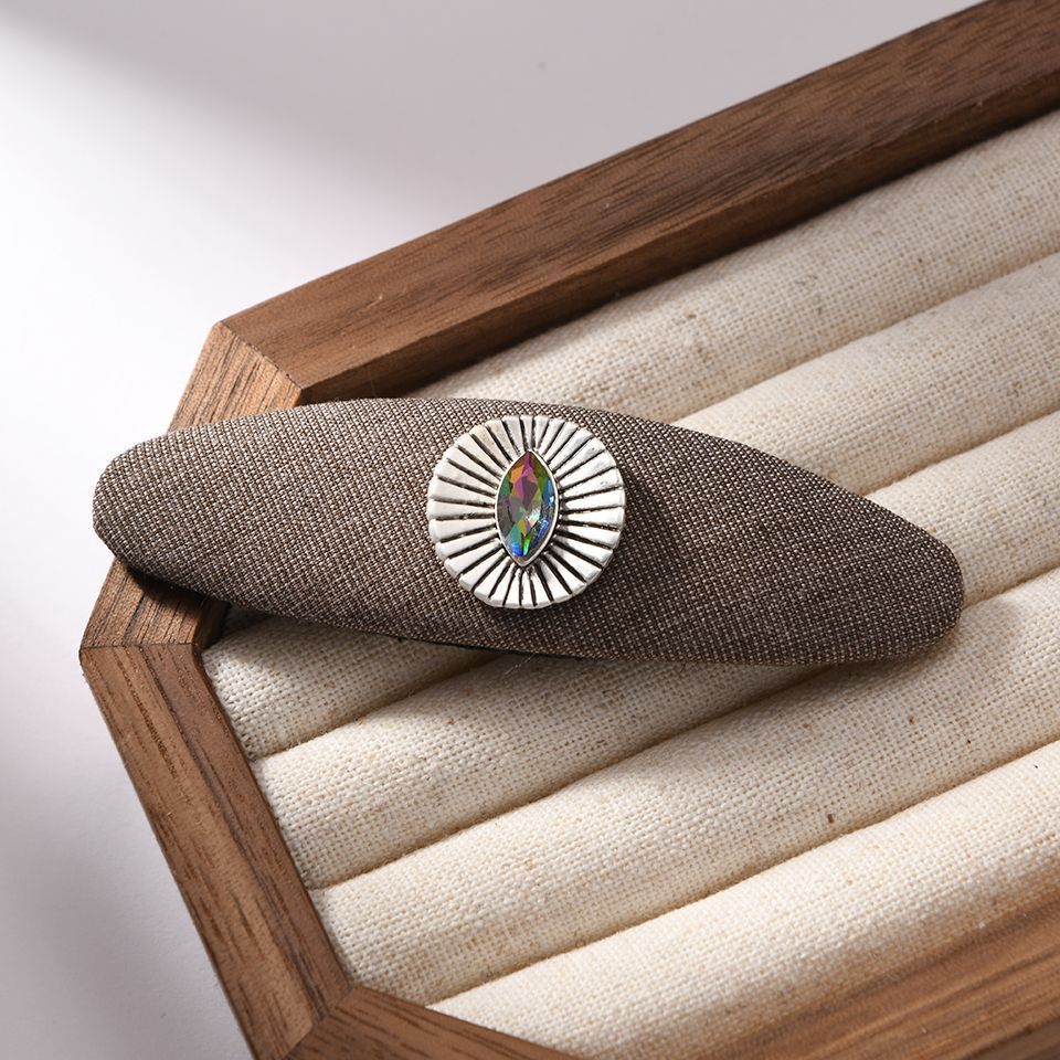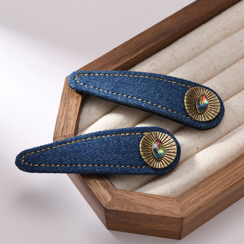 Vintage Denim Fabric Side Clip Ins Style Bb Clip Goddess Bangs Hairpin Light Crystal Clip