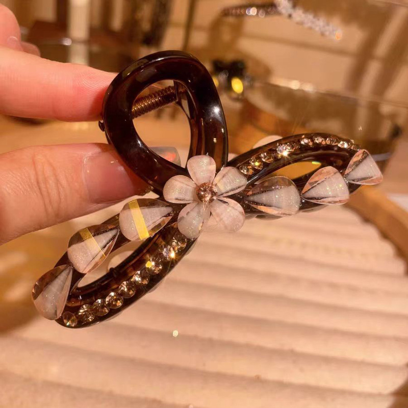 Goddess Elegant Fashion Furry Clip Bow Back of Head Hair Claw Large Melad Diamond-Embedded Claw Clip Light Luxury Hair Accessory
