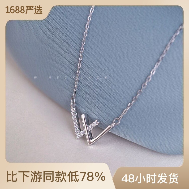 Double V-shaped necklace W letter clavicle necklace women's diamond-embedded Korean style simple platinum-plated geometric chain set goddess necklace