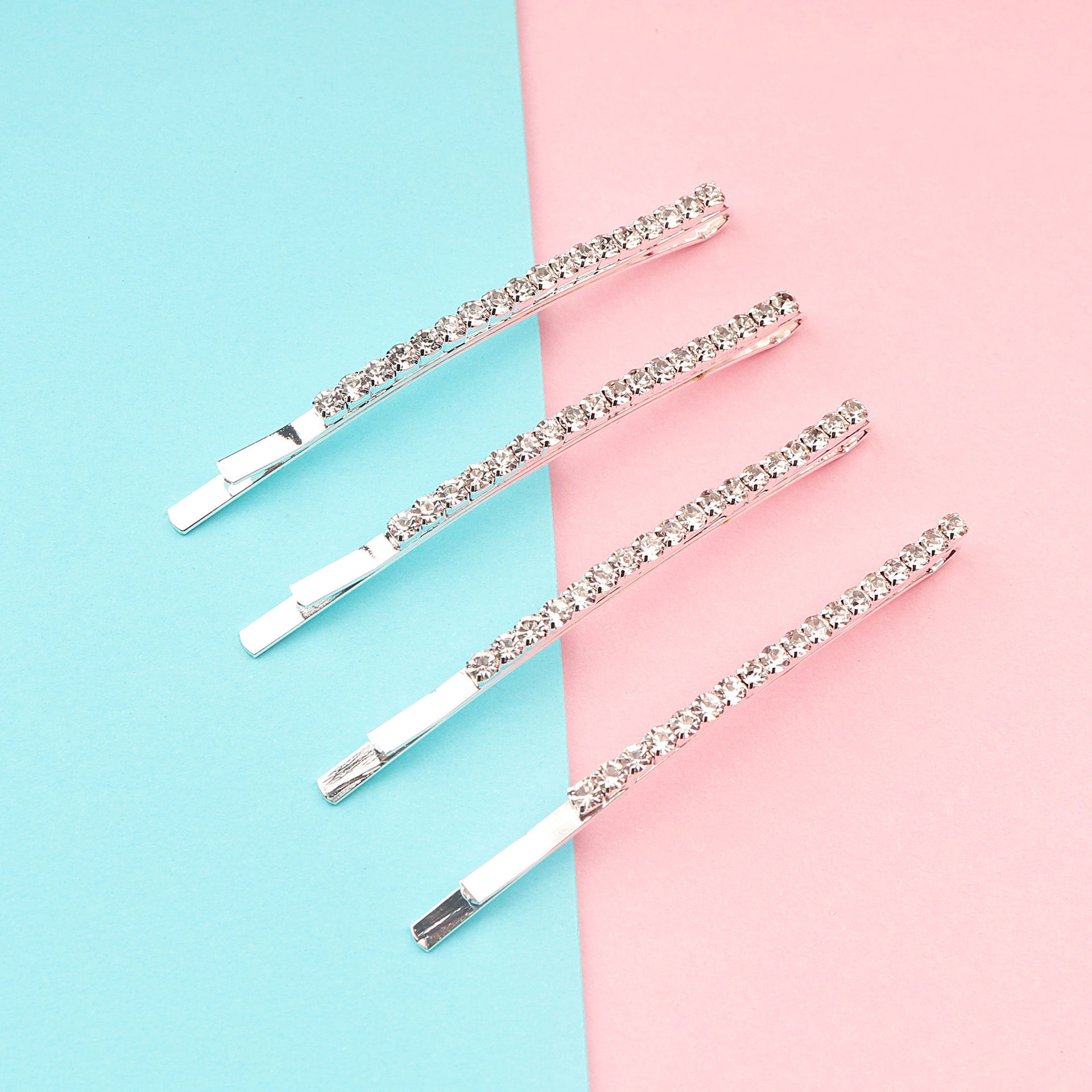 Korean Style Internet Celebrity Hair Clip Thick Silver Alloy Diamond One-character Clip Hair Accessories Goddess Side Clip Top Clip Girl Clip
